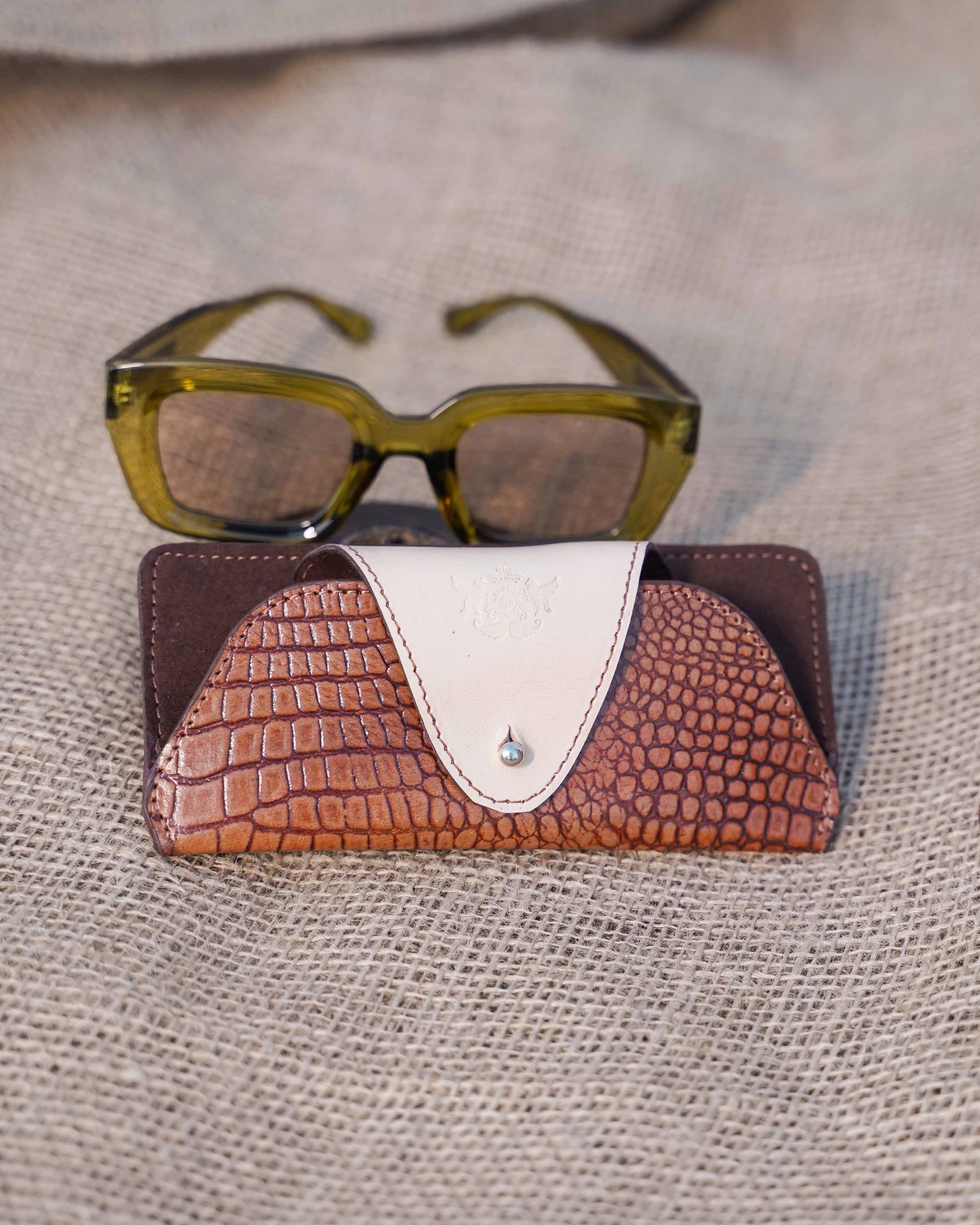 - The rich and vintage collection of Crock Sunglasses Case at Royal Stache is beautified by handcrafting. The stitched done by hand have added a kind of modern appeal in the product.
