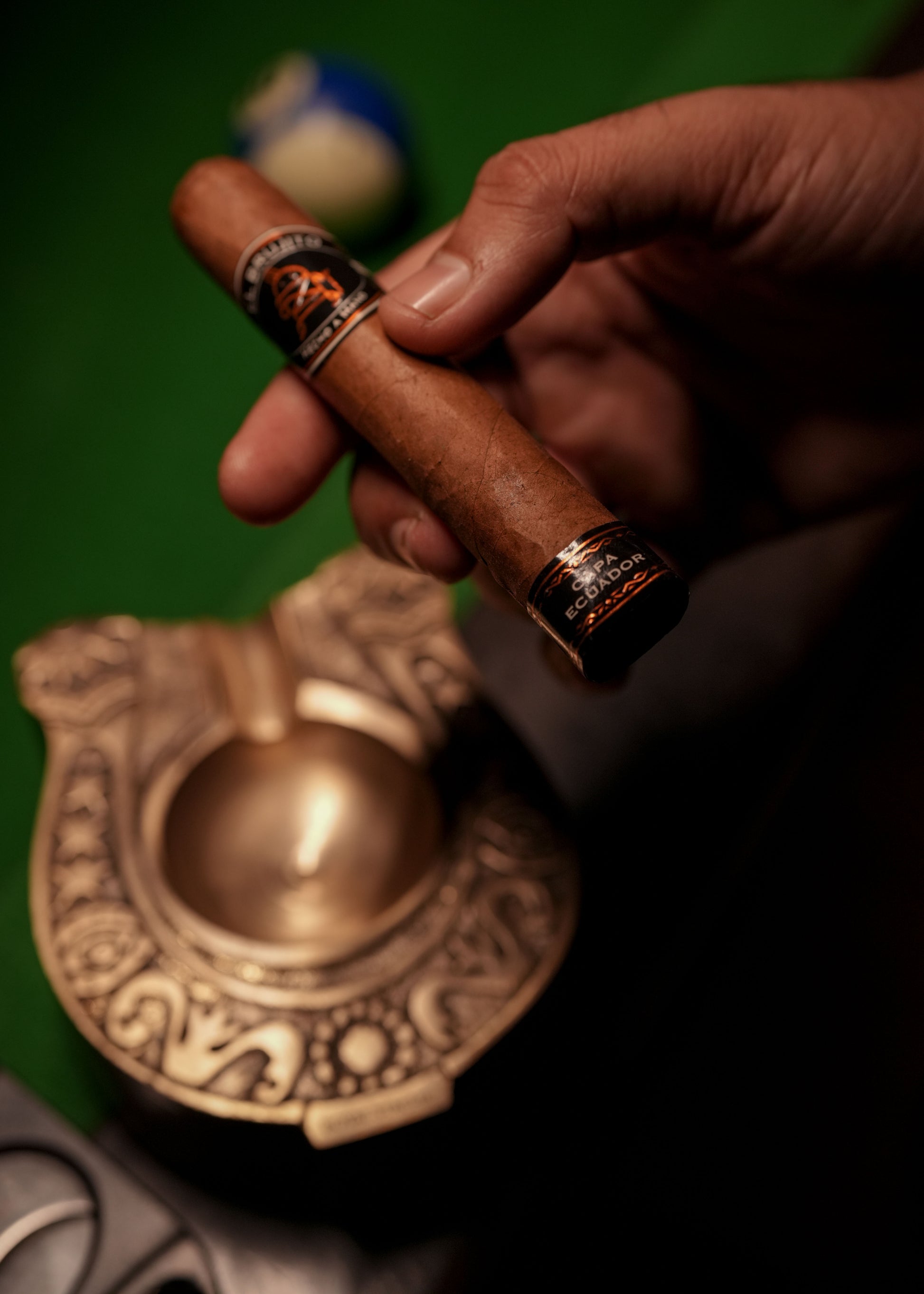 Meticulously handcrafted using solid brass and premium wood, the ashtray showcases intricate detailing and a rich, vintage finish that exudes royalty and character. Its well-balanced form offers a stable resting place for cigars while ensuring durability and timeless appeal.