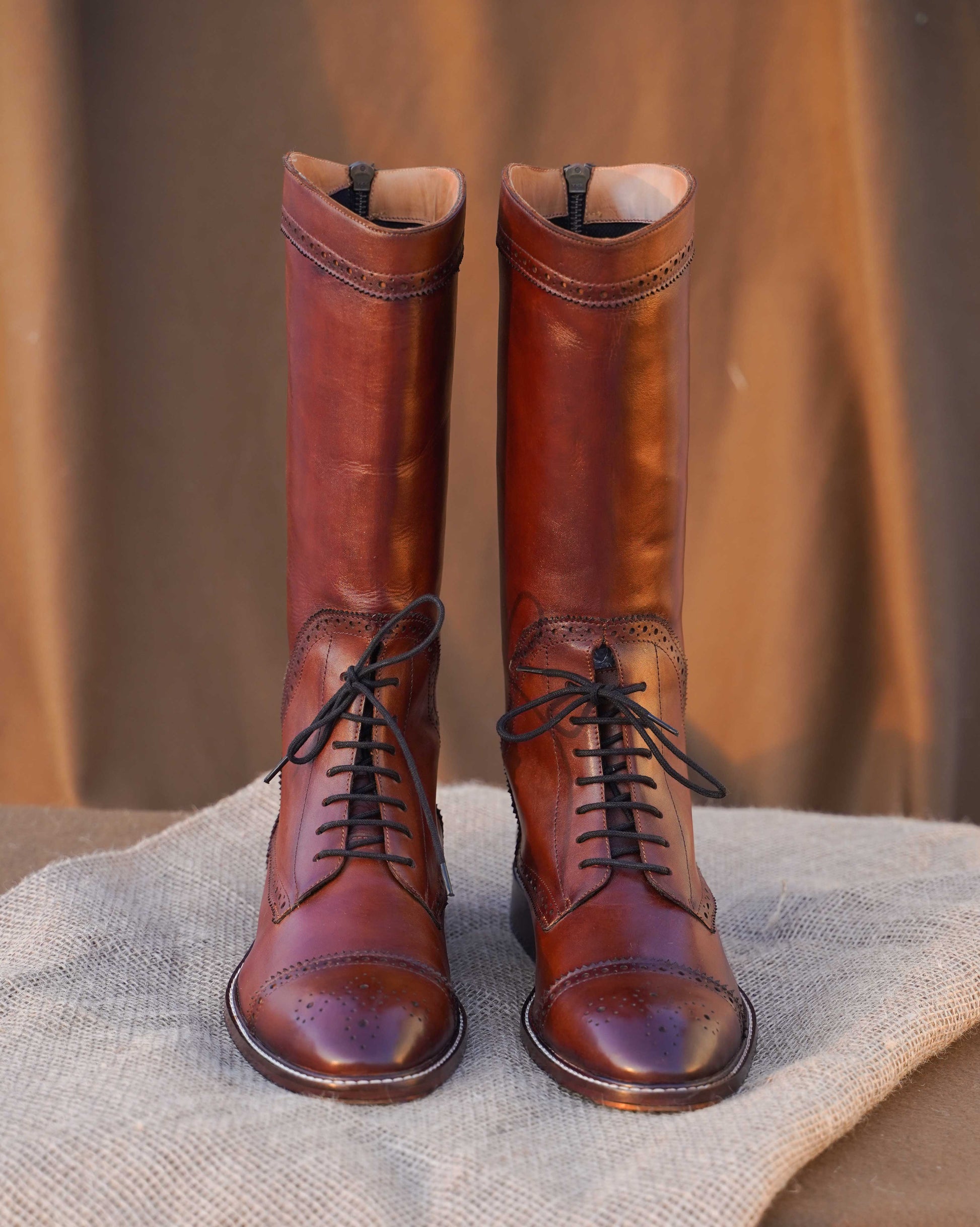 - Royal Stache’s collection of red royal leather boots is completely decorated by hands. The handcrafted art in the boots including staining, painting, designing, and styling is all set to give a vintage glance