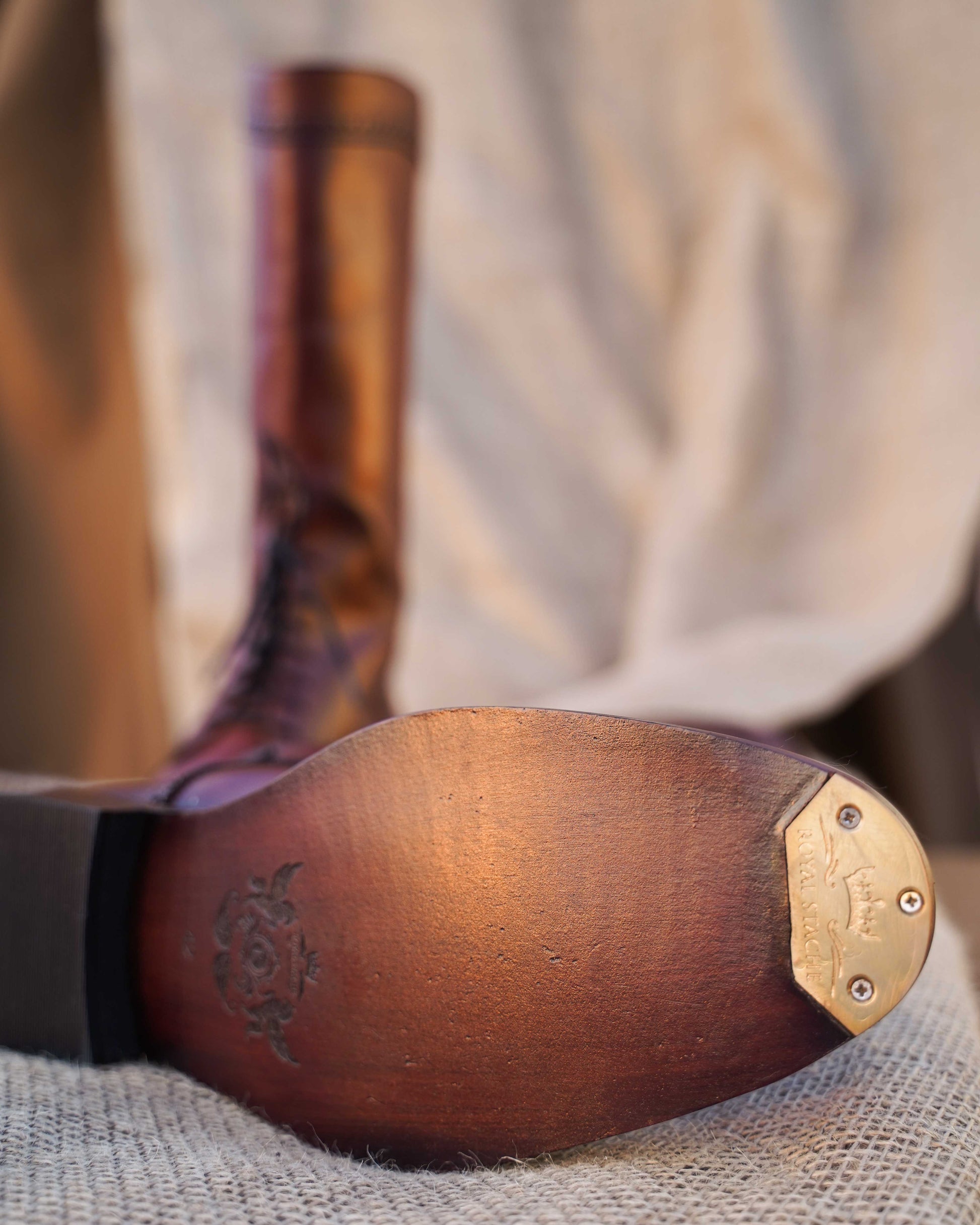 The beautiful garnishing of our red boots is done exclusively by hands. Our boots are painted, burnished, and stained with the help of hands. That is how we at Royal Stache embrace the top quality hide.
