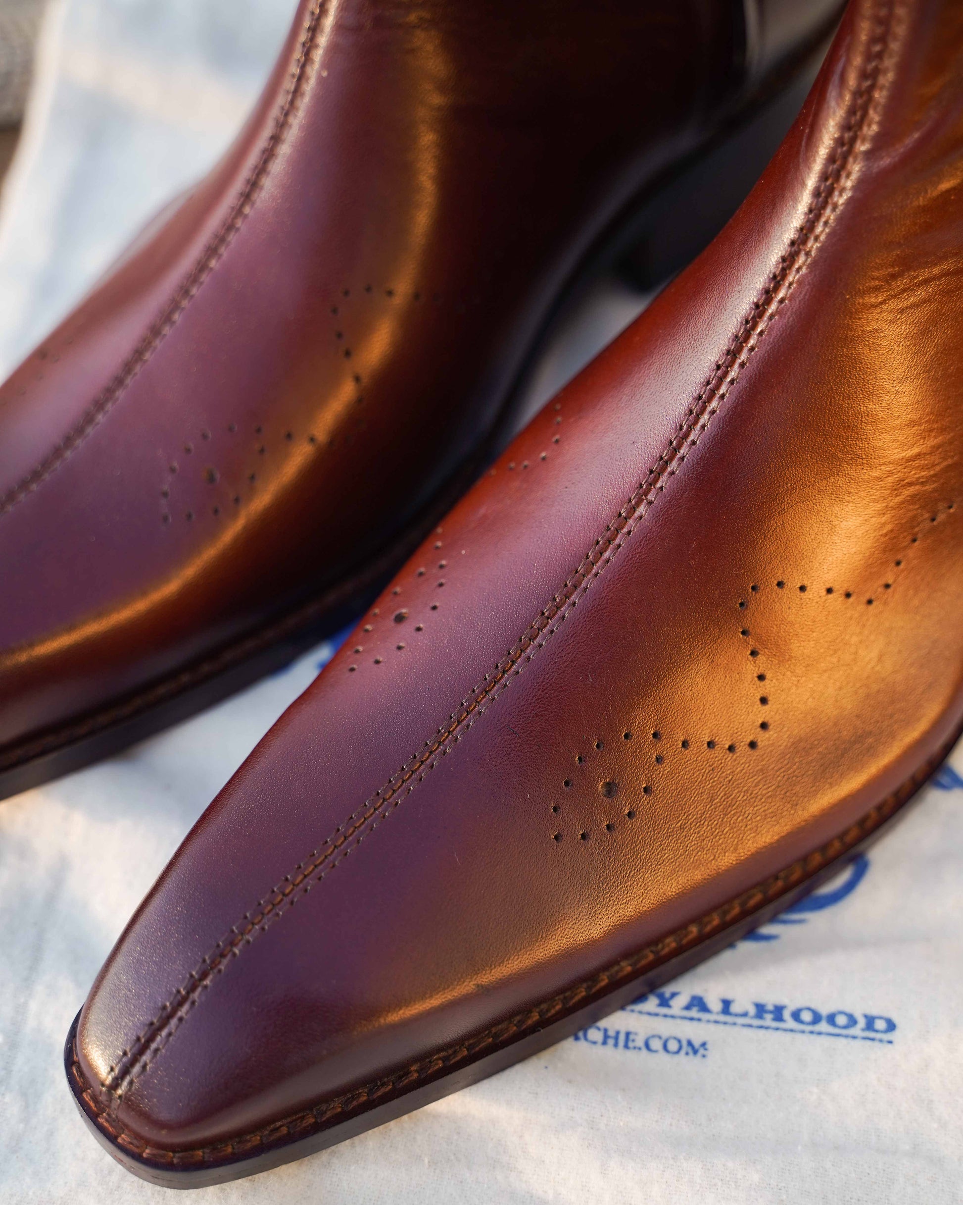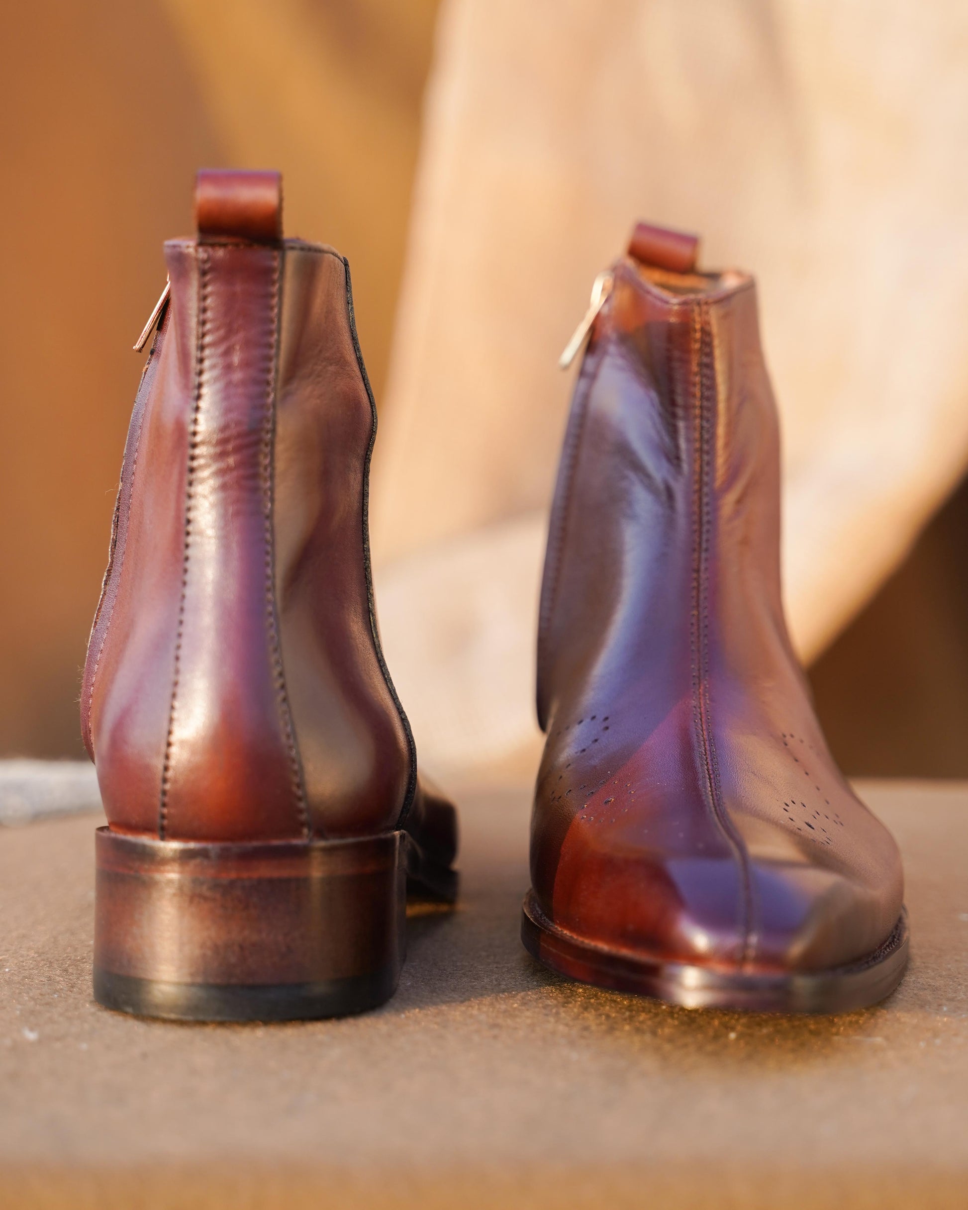 The beautiful garnishing of our red boots is done exclusively by hands. Our boots are painted, burnished, and stained with the help of hands. That is how we at Royal Stache embrace the top quality hide.